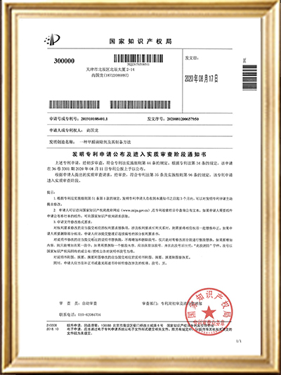 實(shí)用新型專利證書(一種甲醛清除劑的原料加載